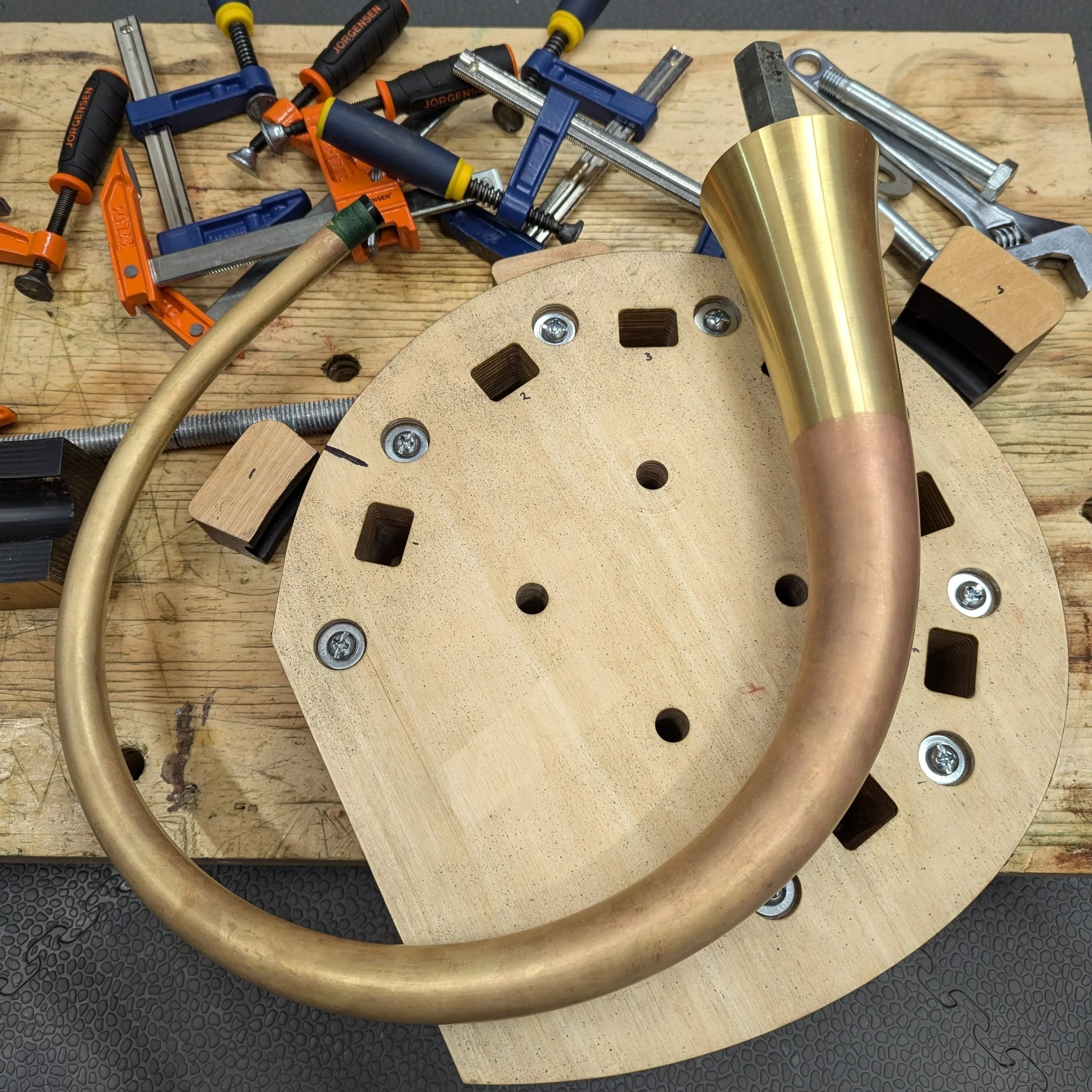 Blue Bend is an innovative new material that I developed to fabricate complex and accurate 3D parts in thin wall brass and nickel silver. While I was trained in traditional methods of bending using pitch, the smell and mess associated with using it became unbearable when I moved to a smaller shop in 2020. After trying Cerrobend and Polybend and even newer resins and frozen mediums, I wasn’t able to find one that gave me the results I was looking for. So, I began my own research and finalized the first recipe in 2022 which I started using in my workshop. After sharing my discoveries with some collegues, the benefits were obvious and I began offering it more widely. Now, in addition to musical instrument makers and tinkerers, other industries that rely on bent tube have added Blue Bend to their workflows, many with great success.